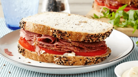 Pastrami, sour kraut, swiss and thousand island served on grilled bread. Pickles on the side.