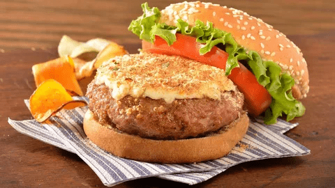 Turkey patty grilled and served on grilled bread with swiss and american cheese and grilled onions. Pickles on the side.