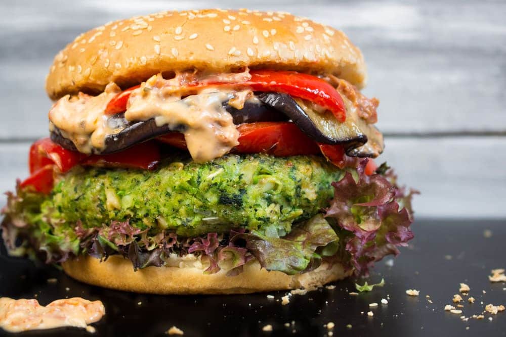 Veggie burger patty served on grilled bread with american and swiss cheese and grilled onions. Pickles on the side.